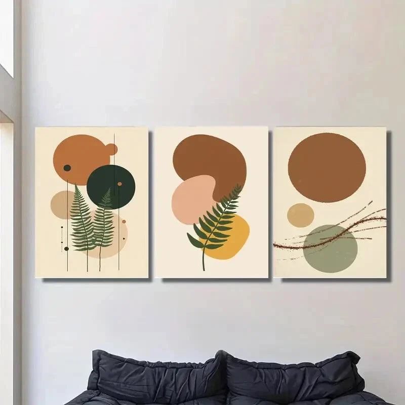 3pcs Geometric & Nature-Inspired Designs Metal Print Ready to Hang Art