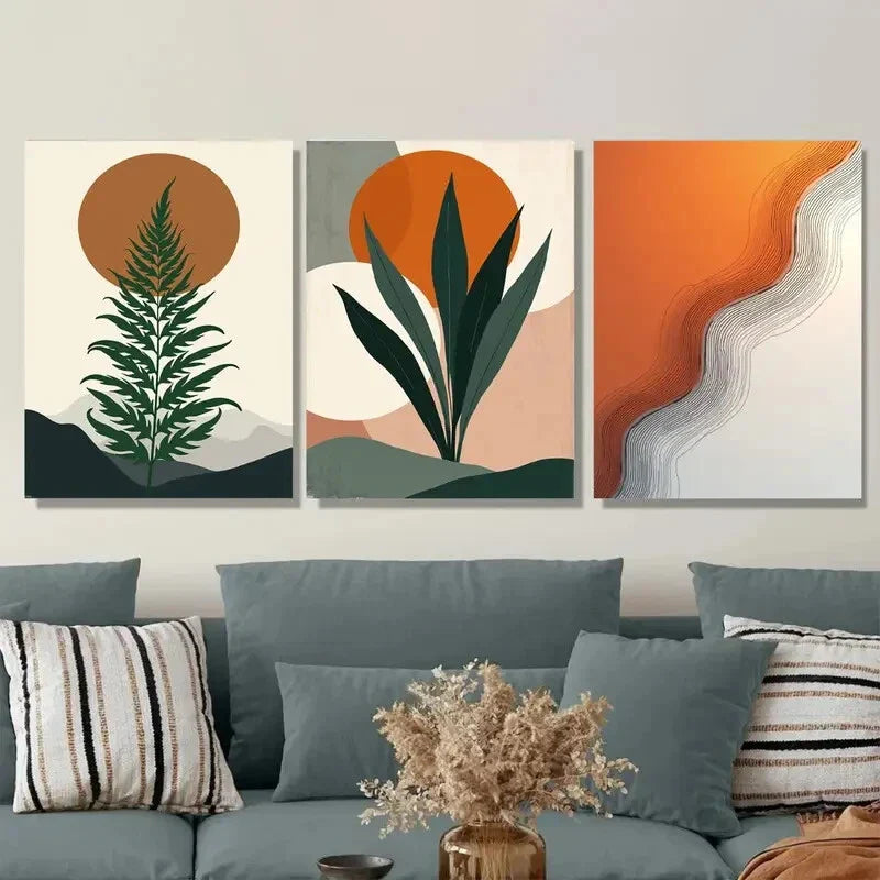 3pcs Geometric & Nature-Inspired Designs Metal Print Ready to Hang Art