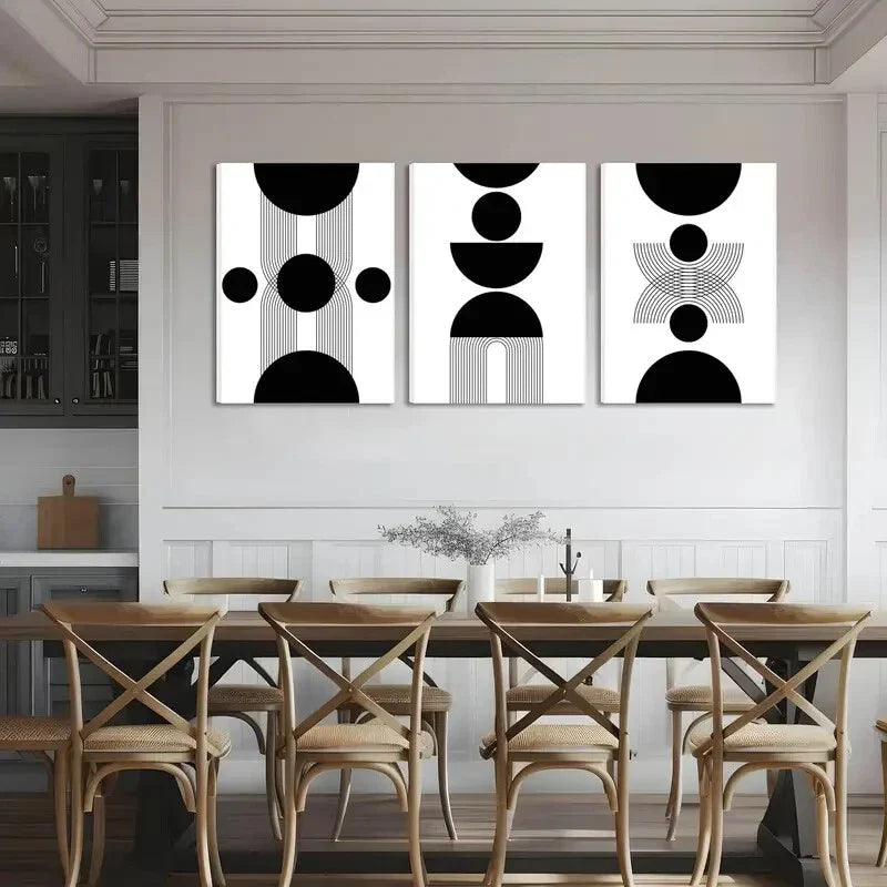 3pcs Geometric Pattern Black and White Metal Print Ready to Hang Art