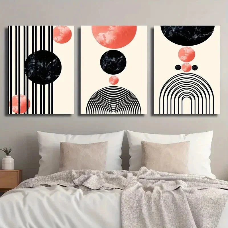 3pcs Geometric Rainbow Mid Century Modern Metal Print Ready to Hang Art