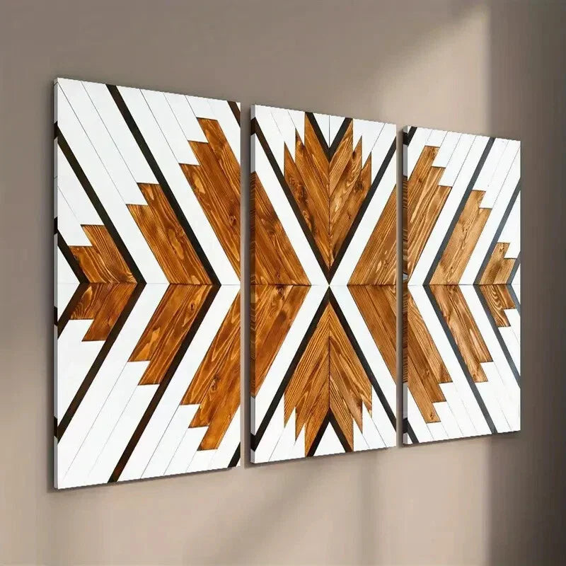 3pcs Geometric Wood Decor Wall Art Set Canvas Framed 40x60cm - High Quality Print 100% Australian Made Wall Canvas Ready to Hang