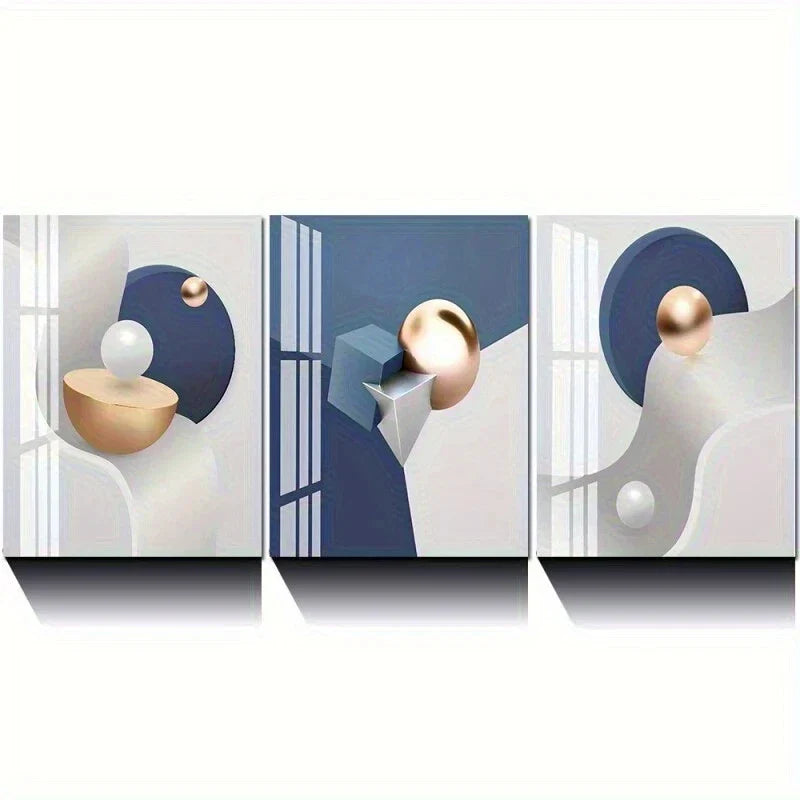 3pcs Geometry Abstract Blue Gray White Bright Metal Print Ready to Hang Art
