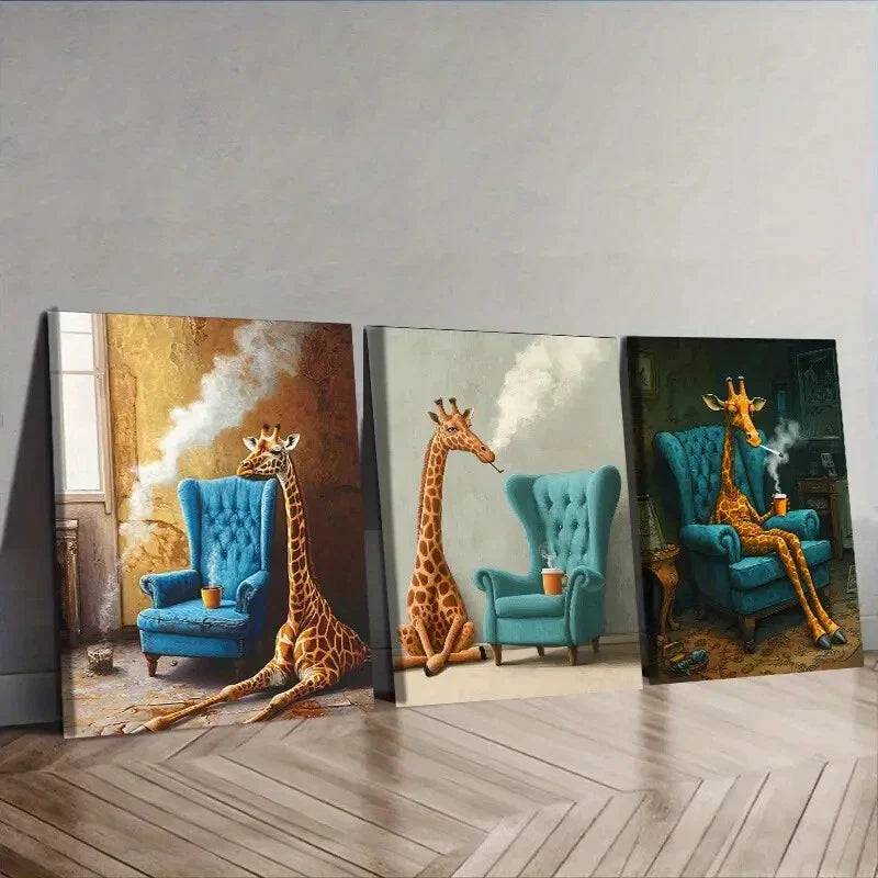 3pcs Giraffe & Armchair Wall Art Set Canvas Framed 40x60cm - High Quality Print 100% Australian Made Wall Canvas Ready to Hang