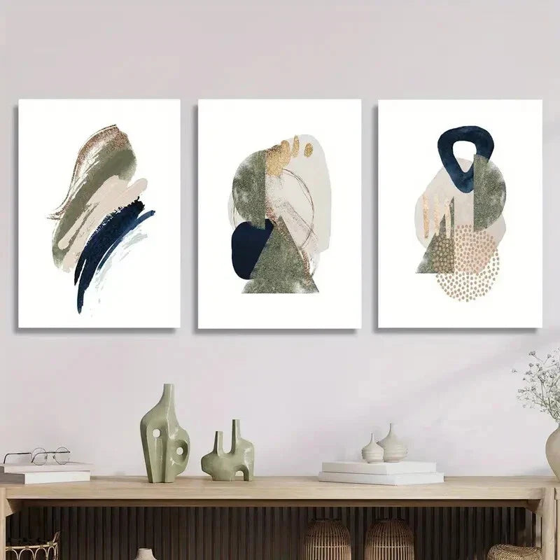 3pcs Golden Foil Accents, White Vector Texture Metal Print Ready to Hang Art