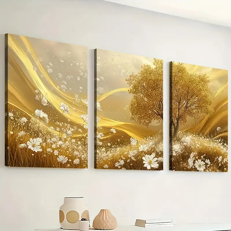 3pcs Golden Grassland Light Luxury Art Calm Wall Art Set Canvas Framed 40x60cm - High Quality Print 100% Australian Made Wall Canvas Ready to Hang