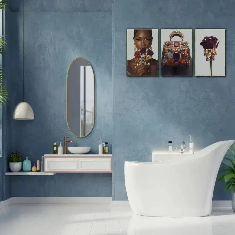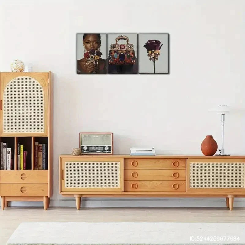 3pcs Golden Jewelry Female Portrait Art Poster Metal Print Ready to Hang Art