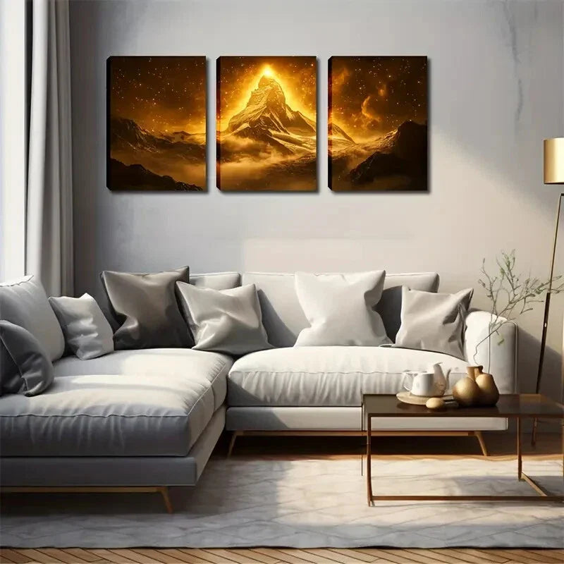 3pcs Golden light shining Magic hilltop abstract Wall Art Set Canvas Framed 40x60cm - High Quality Print 100% Australian Made Wall Canvas Ready to Hang