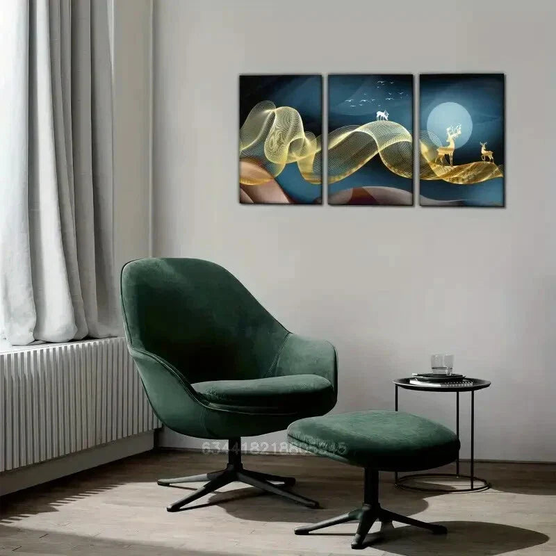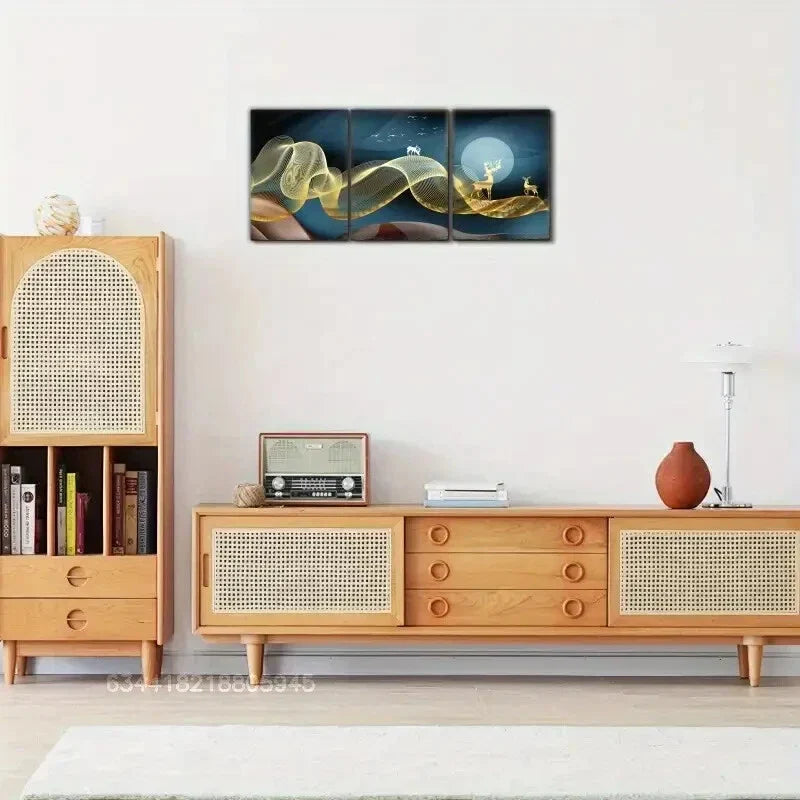 3pcs Golden sika deer and Golden ribbons Metal Print Ready to Hang Art