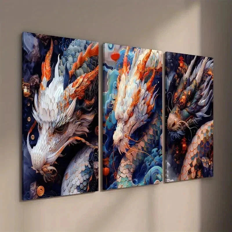 3pcs Gorgeous Oriental Dragon Decorative Wall Art Set Canvas Framed 40x60cm - High Quality Print 100% Australian Made Wall Canvas Ready to Hang