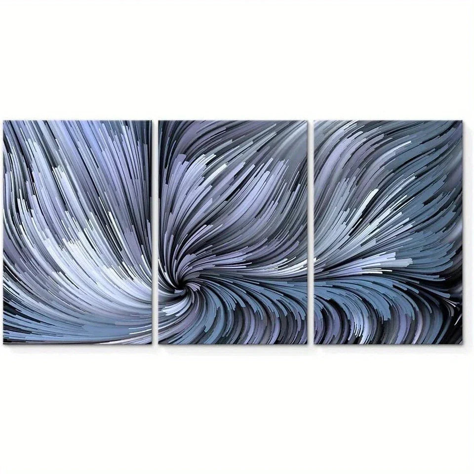 3pcs Gorgeous Petard Gray & White Lines Design Metal Print Ready to Hang Art