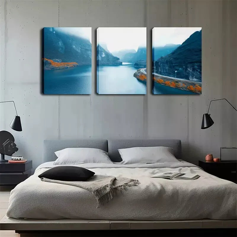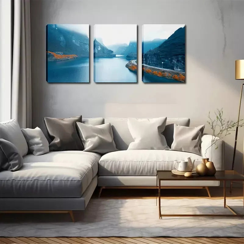 3pcs Great Mountain River Landscape Pictures Wall Art Set Canvas Framed 40x60cm - High Quality Print 100% Australian Made Wall Canvas Ready to Hang