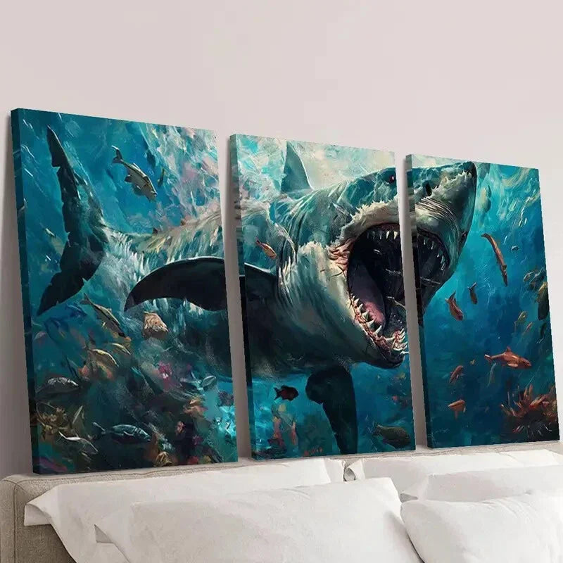 3pcs Great White Shark Canvas Animal Wall Art Set Canvas Framed 40x60cm - High Quality Print 100% Australian Made Wall Canvas Ready to Hang