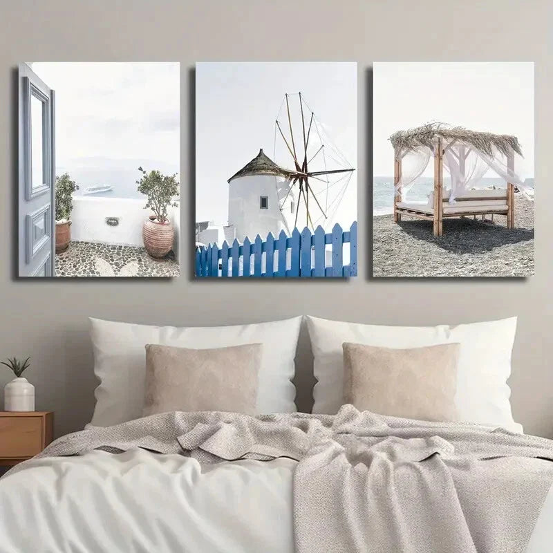 3pcs Greece Coast Santorini Island Mediterranean Metal Print Ready to Hang Art