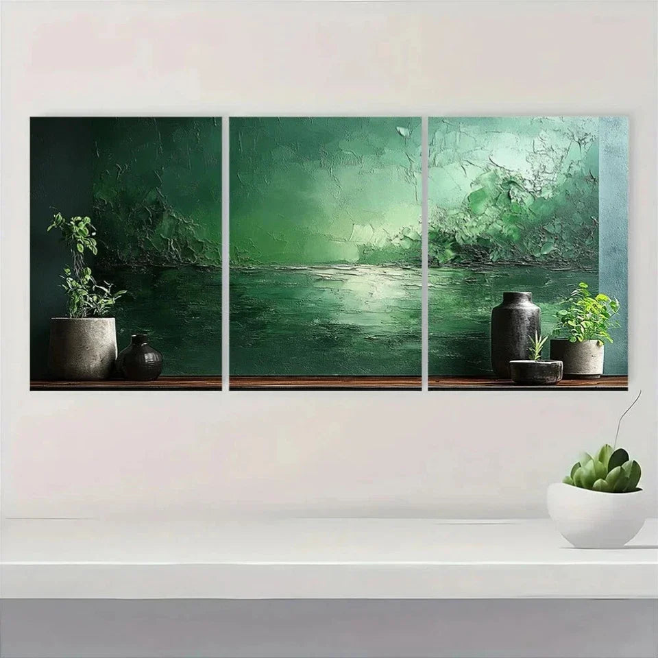 3pcs Green Abstract Oil Painting Metal Print Ready to Hang Art
