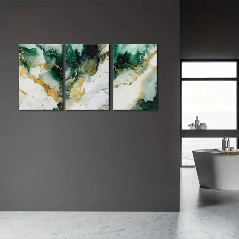 3pcs Green and Golden Abstract Metal Print Ready to Hang Art