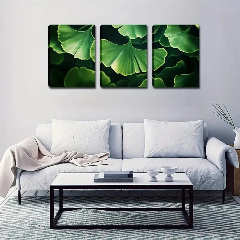 3pcs Green Ginkgo Leaf Wall Art Set Canvas Framed 40x60cm - High Quality Print 100% Australian Made Wall Canvas Ready to Hang