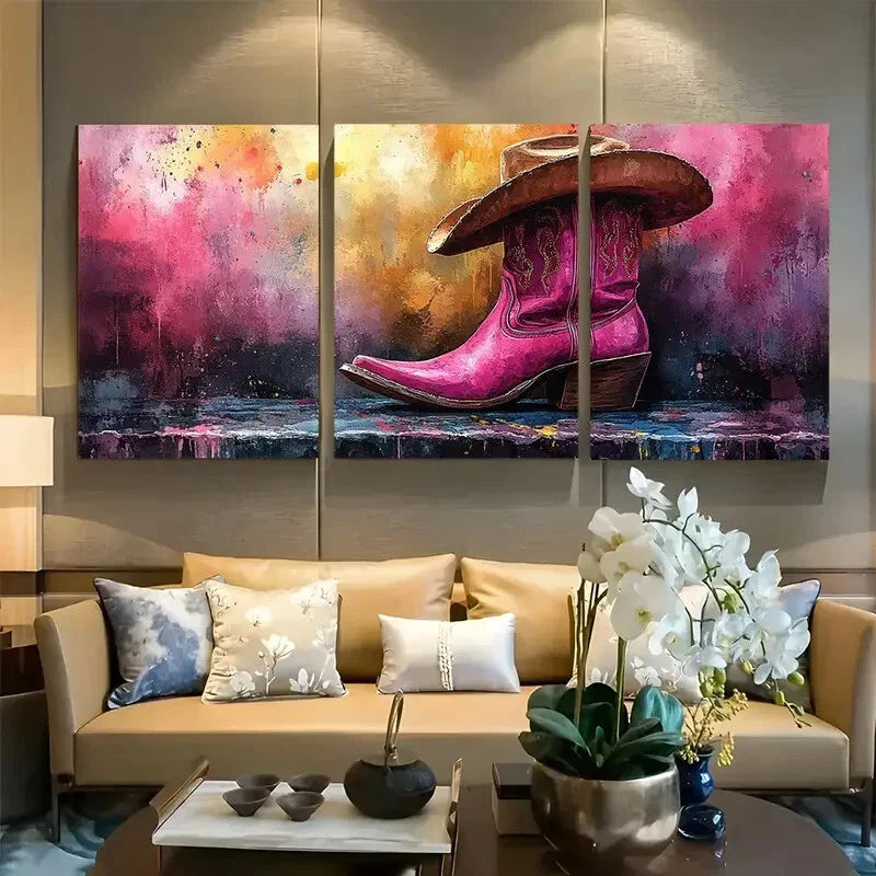 3pcs Groovy and Funky Cowgirl Boots Design Metal Print Ready to Hang Art