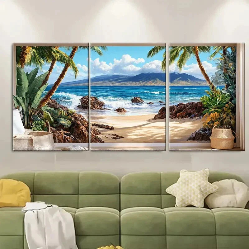 3pcs Hawaiian Beach Wall Art Tropical Landscape Metal Print Ready to Hang Art