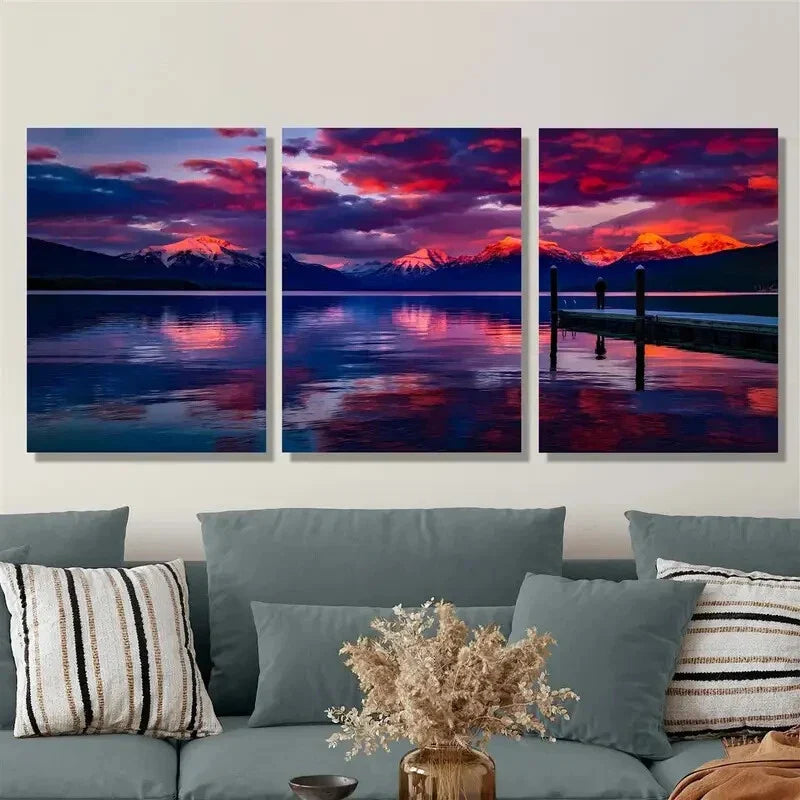 3pcs he lake and snow-capped mountains Metal Print Ready to Hang Art
