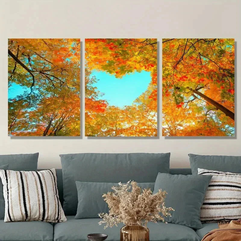 3pcs Heart Shaped Autumn Forest Trees Metal Print Ready to Hang Art