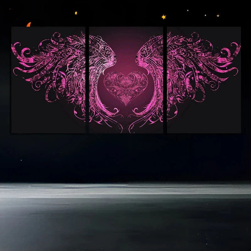 3pcs Heart-Shaped Wings Stunning Rose Metal Print Ready to Hang Art