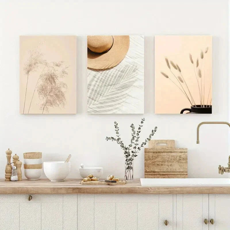 3pcs Vacation Hat Bunny Grass Reed Grass Modern Metal Print Ready to Hang Art