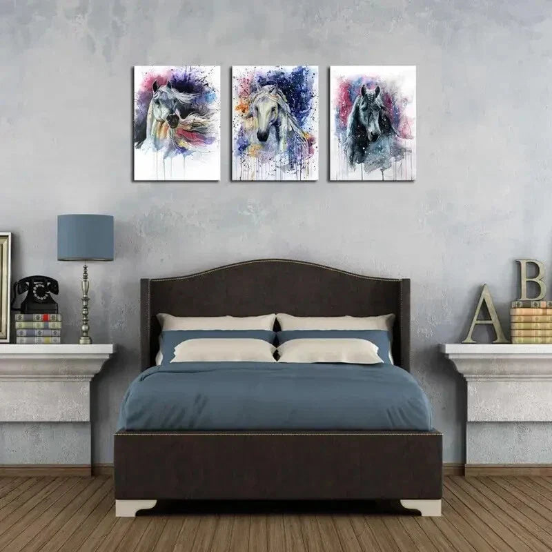 3pcs Horse Animal Painting Prints Metal Print Ready to Hang Art