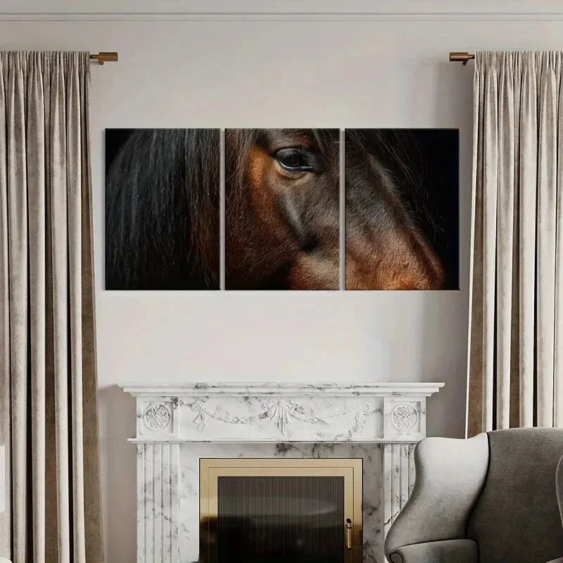 3pcs Horse Portraits Warm Tones & Expressive Eyes Metal Print Ready to Hang Art