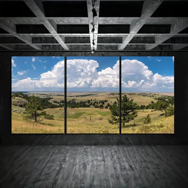 3pcs Huge Thunderstorm Clouds Rolling Over Park Metal Print Ready to Hang Art