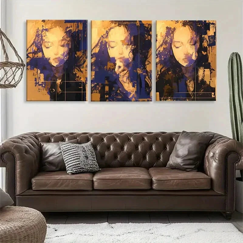 3pcs Human Face in Bold Orange & Blue Perfect Wall Art Set Canvas Framed 40x60cm - High Quality Print 100% Australian Made Wall Canvas Ready to Hang