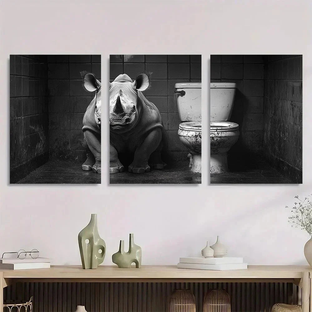 3pcs Humorous Rhino Black And White Metal Print Ready to Hang Art