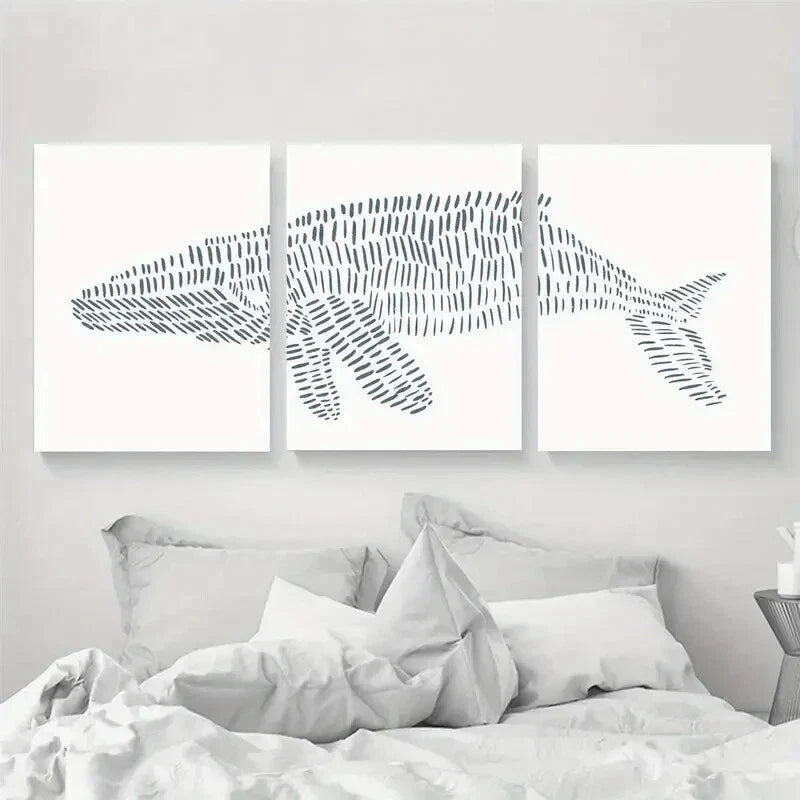 3pcs Humpback Whale Modern Illustration Metal Print Ready to Hang Art
