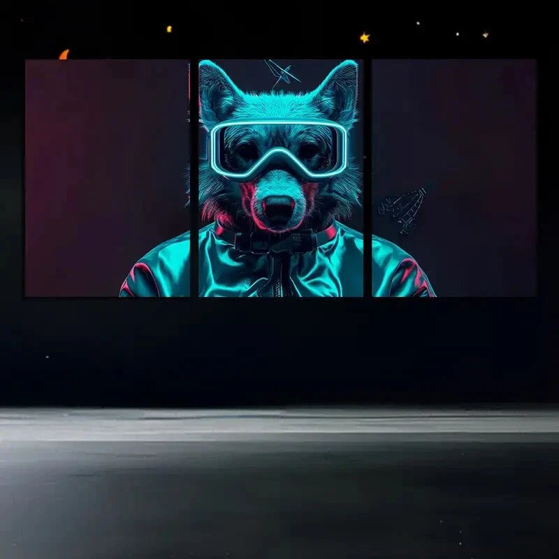 3pcs Husky Wearing Glass Dark Blue Theme Metal Print Ready to Hang Art
