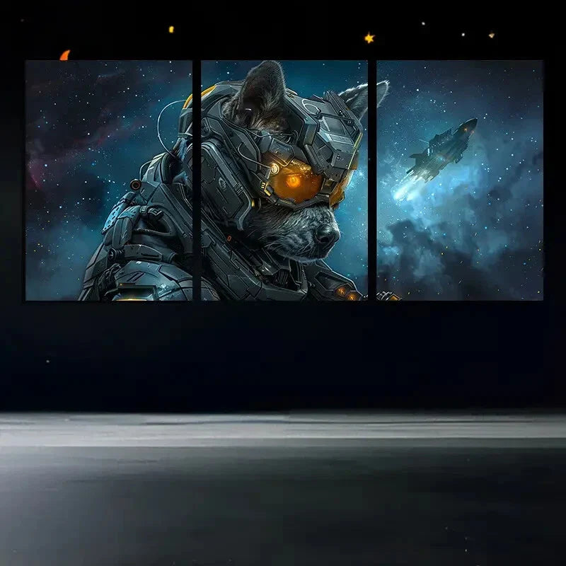 3pcs Husky Wearing Glass & Helmet Metal Print Ready to Hang Art