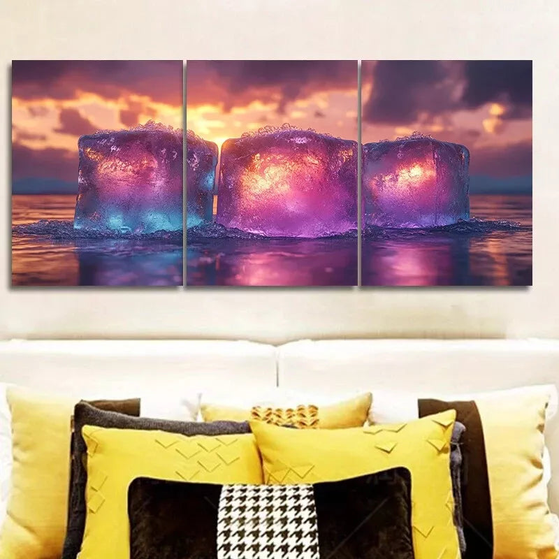 3pcs Ice Cubes Design, Coastal Landscape Wall Art Set Canvas Framed 40x60cm - High Quality Print 100% Australian Made Wall Canvas Ready to Hang