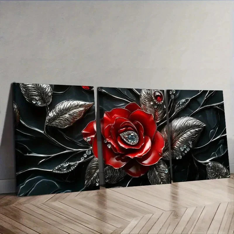 3pcs Jewel rose Wall Art Set Canvas Framed 40x60cm - High Quality Print 100% Australian Made Wall Canvas Ready to Hang