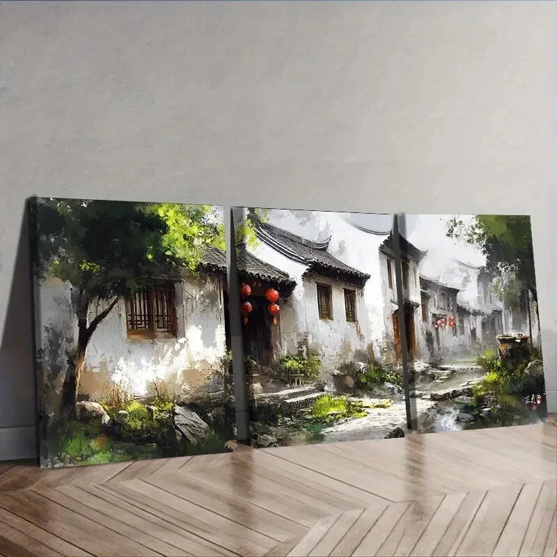 3pcs Jiangnan water town Wall Art Set Canvas Framed 40x60cm - High Quality Print 100% Australian Made Wall Canvas Ready to Hang