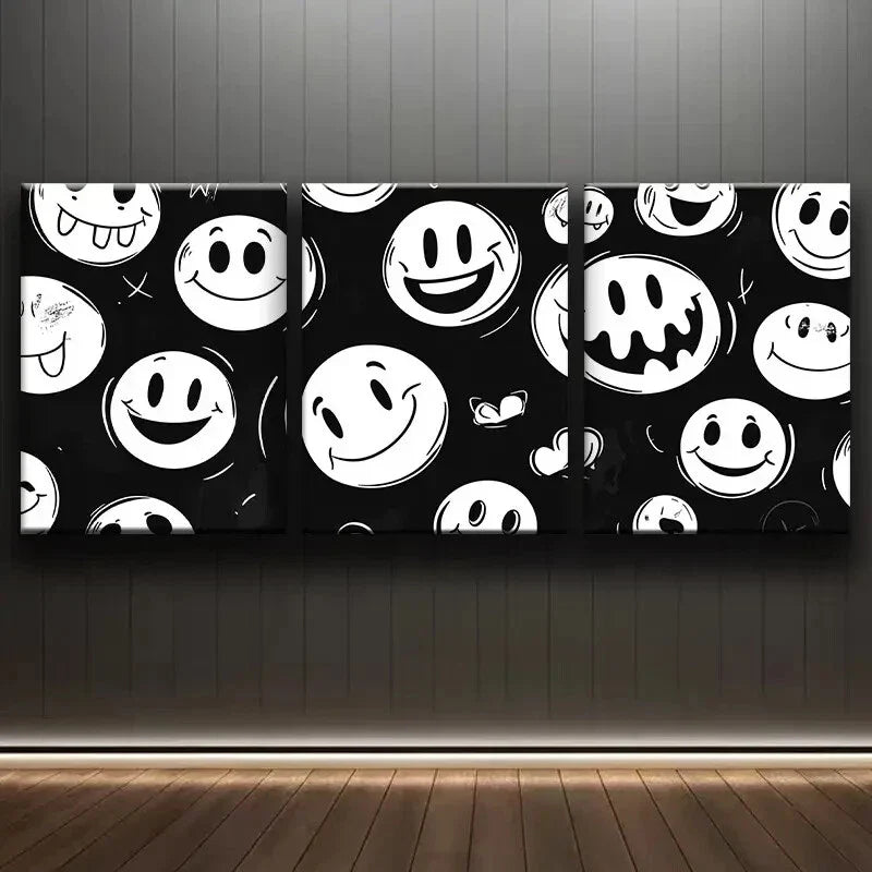 3pcs Joyful Face White Perfect Joy Black Wall Art Set Canvas Framed 40x60cm - High Quality Print 100% Australian Made Wall Canvas Ready to Hang