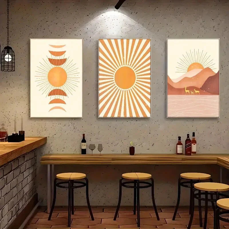 3pcs Landscape Sun Mountains And Deer Poster Art Metal Print Ready to Hang Art