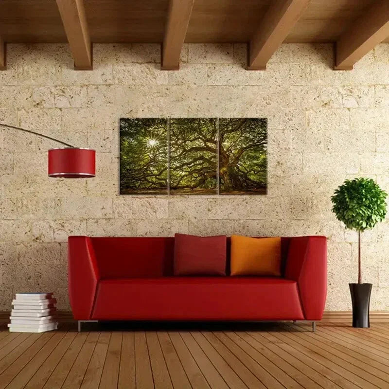 3pcs Large Old Tree in Sunshine Metal Print Ready to Hang Art