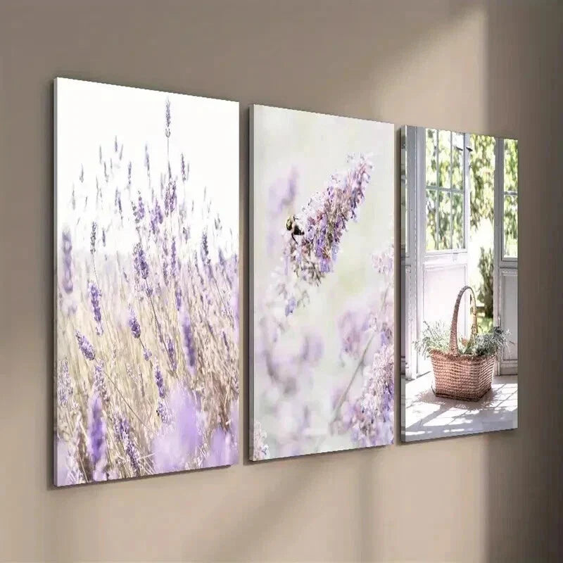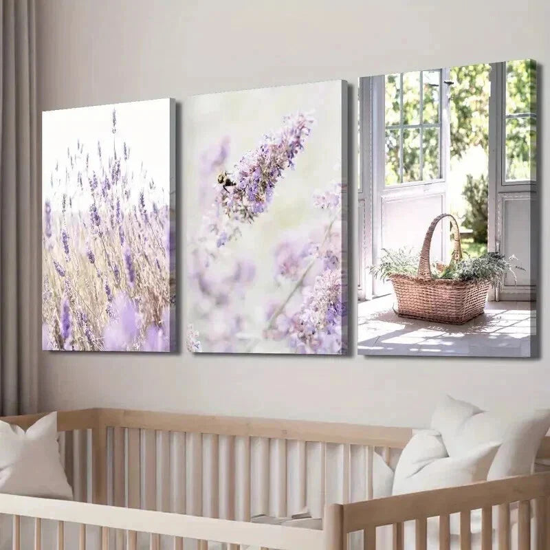 3pcs Lavender in Basket & Bee Decor Wall Art Set Canvas Framed 40x60cm - High Quality Print 100% Australian Made Wall Canvas Ready to Hang