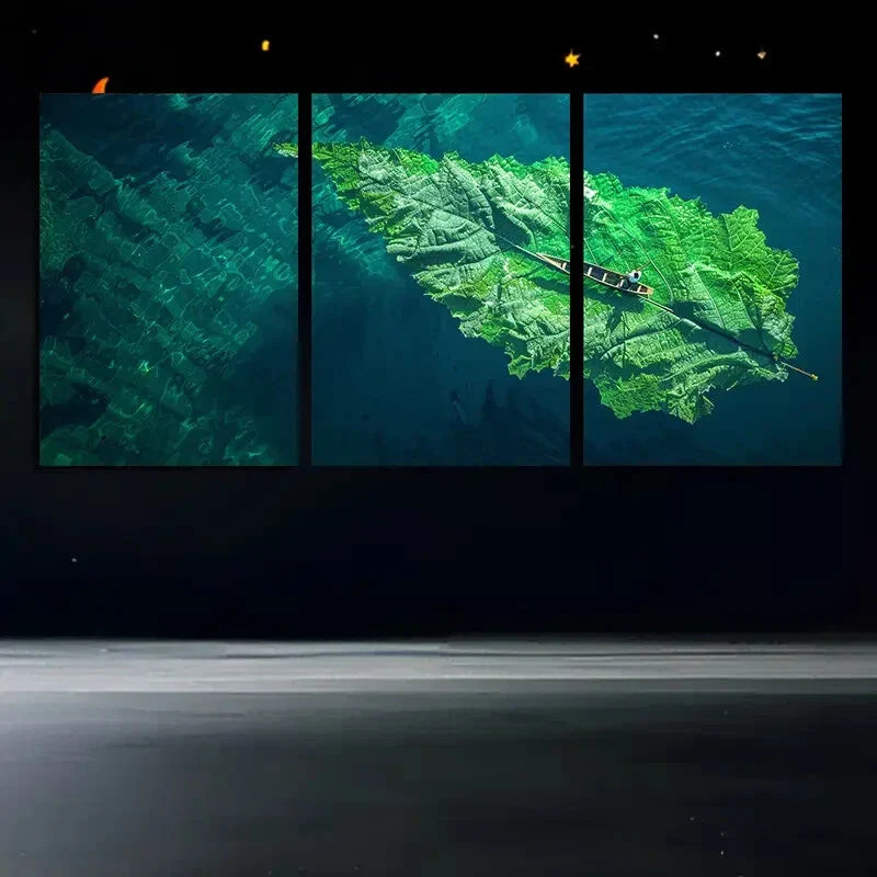 3pcs Leaf and Boat Design Beach Metal Print Ready to Hang Art