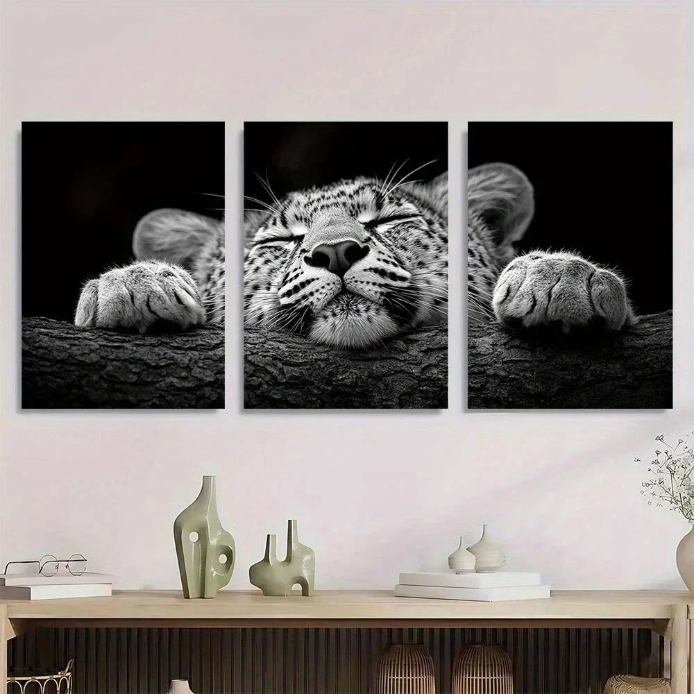 3pcs Leopard Black & White Elegant Animal Metal Print Ready to Hang Art