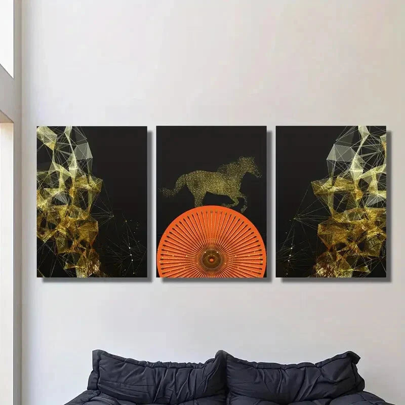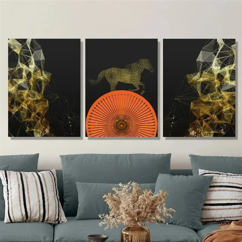3pcs Light luxury Nordic gold line horse Metal Print Ready to Hang Art