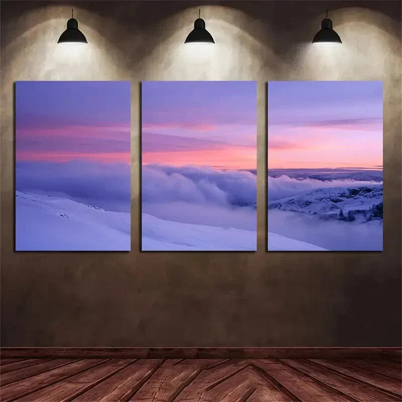 3pcs Light Pink and Purple Sky at Dawn Metal Print Ready to Hang Art