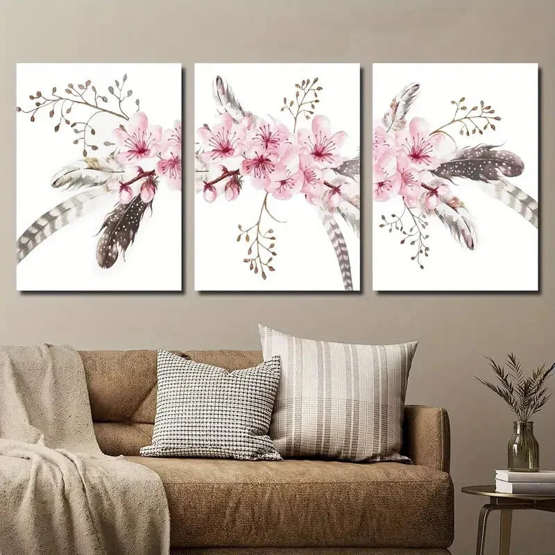 3pcs Light Pink Cherry Blossom Botanical Flowers Metal Print Ready to Hang Art