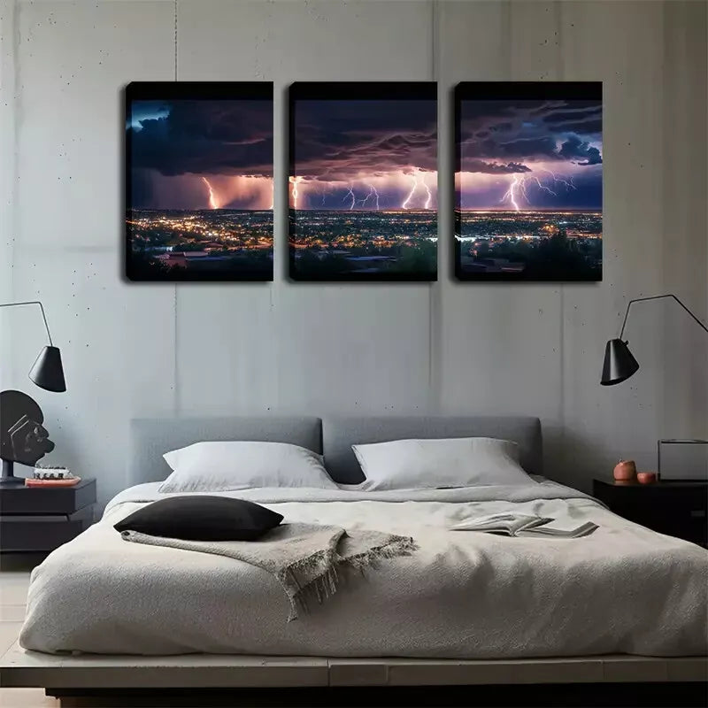 3pcs Lightning That Amazes Neighbors Wall Art Set Canvas Framed 40x60cm - High Quality Print 100% Australian Made Wall Canvas Ready to Hang