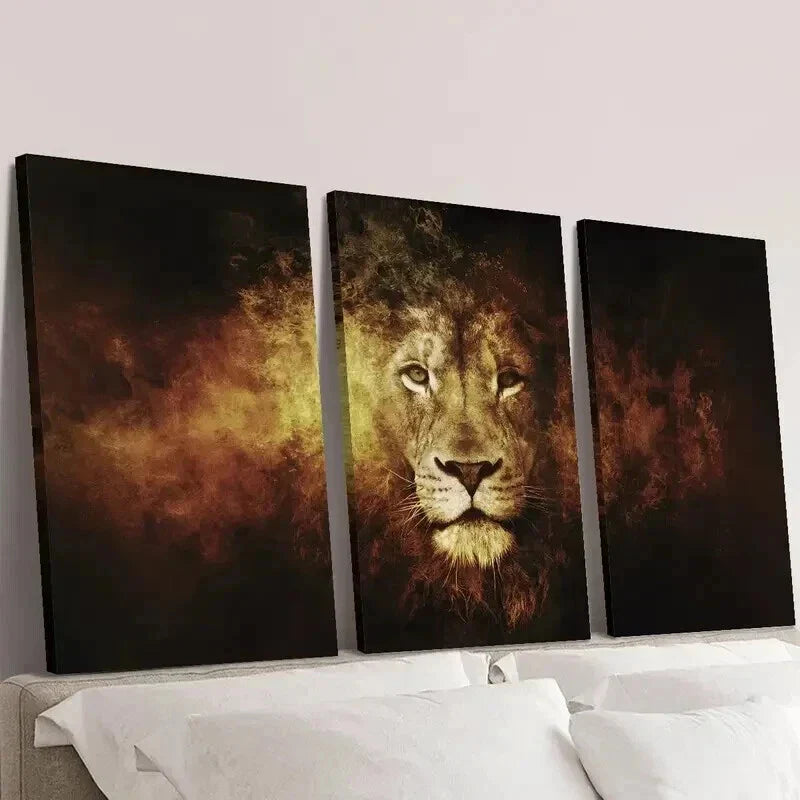 3pcs Lion Face Portrait Orientation Wall Art Set Canvas Framed 40x60cm - High Quality Print 100% Australian Made Wall Canvas Ready to Hang
