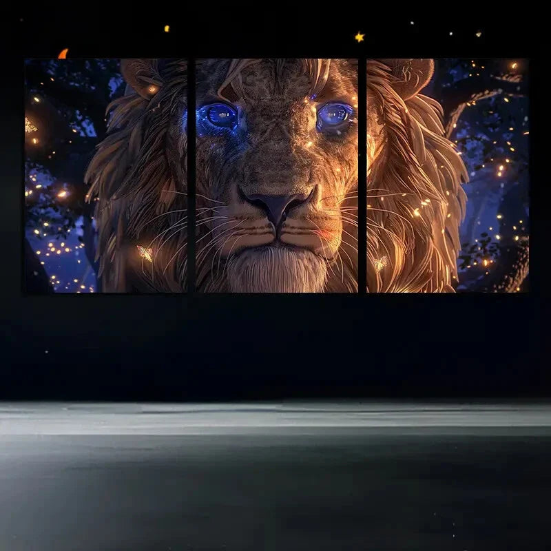 3pcs Lion Forest Guardian Stunning Purple Eyes Metal Print Ready to Hang Art