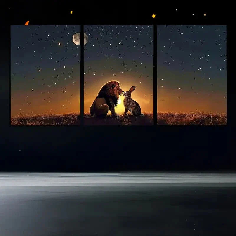 3pcs Lion Rabbit Sunset Moon Grasses Metal Print Ready to Hang Art